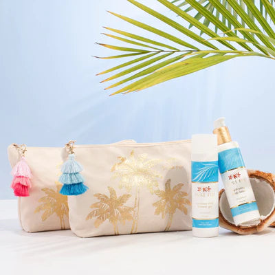 Includes the award-winning 8.5oz shower gel and 8oz hydrating body lotion in a palm-inspired pouch.